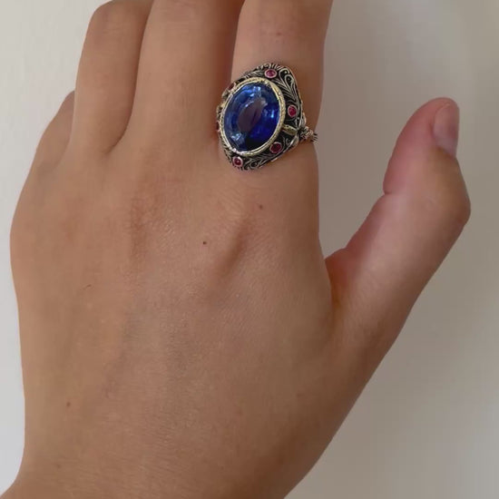 Antique Sapphire and Rubies Statement Ring in 18k Gold and Silver