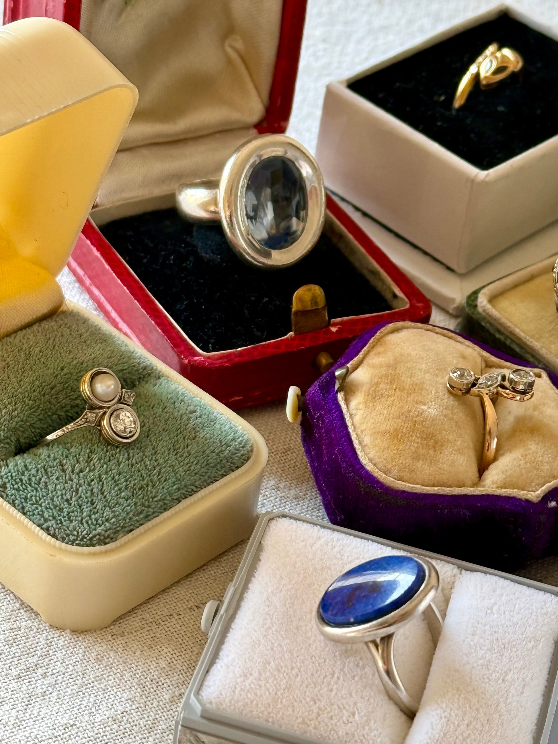 A refined piece blending soft luster with antique brilliance — perfect for vintage jewellery lovers or as a unique engagement or anniversary ring.