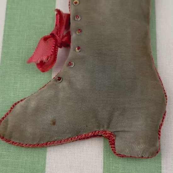 Step back in time with this exquisite Victorian-era needle case, whimsically shaped like a lady’s high-button boot, c. 1880s.