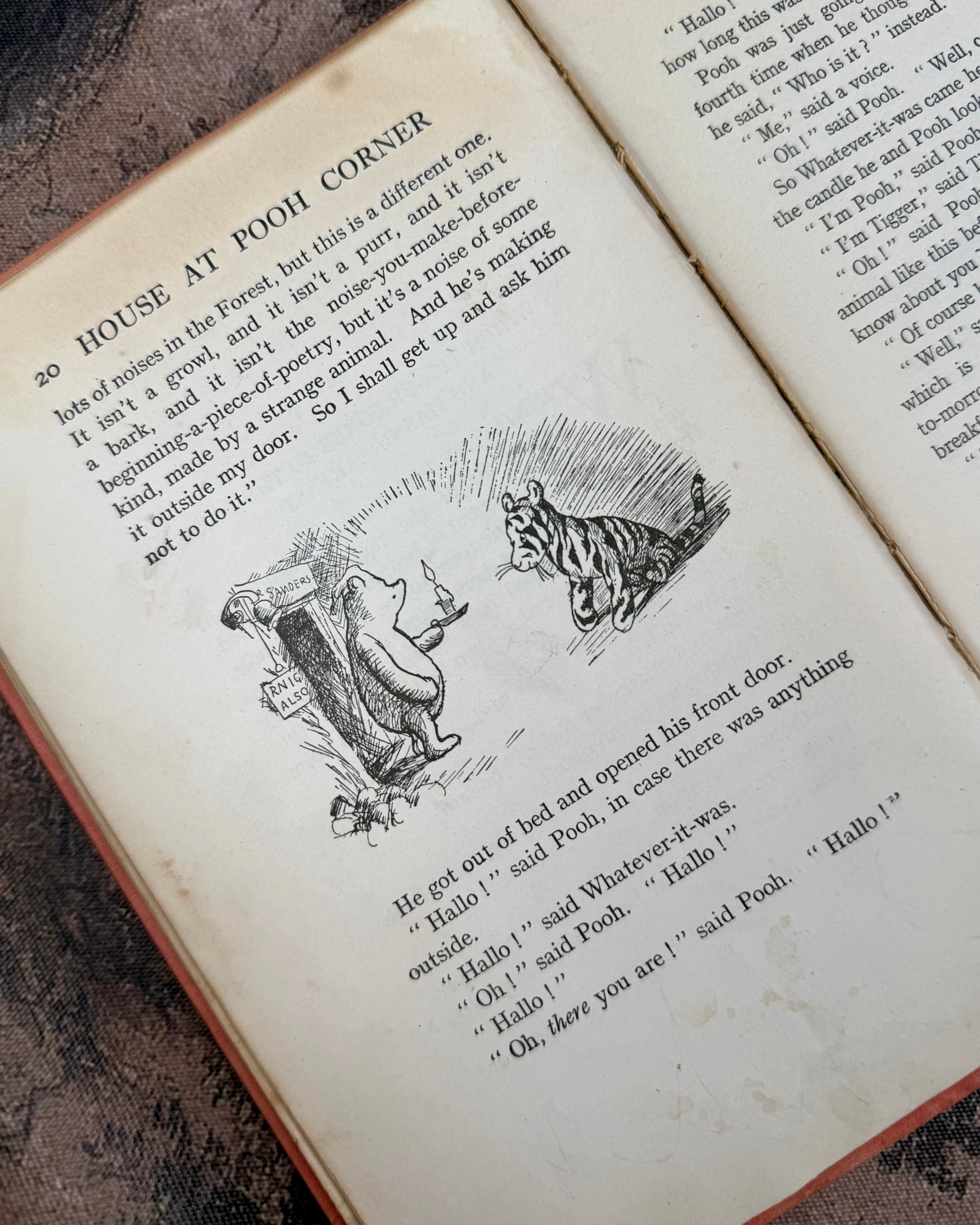 A charming early edition of The House at Pooh Corner by A. A. Milne, illustrated by the original artist E. H. Shepard.