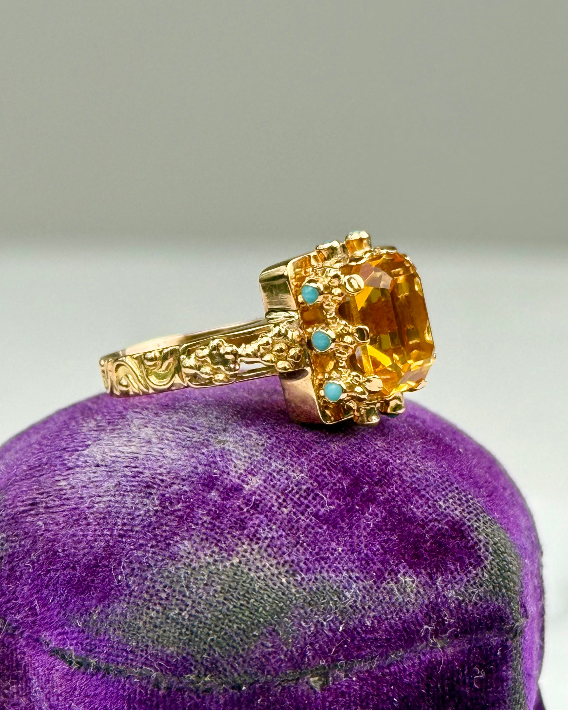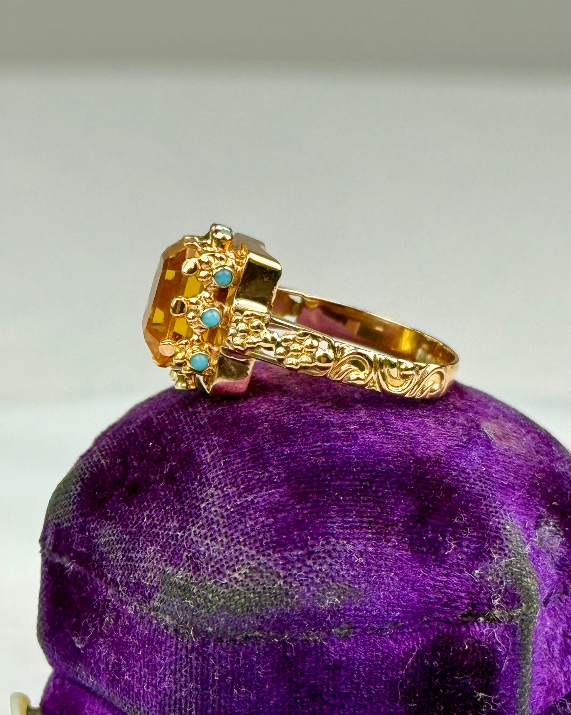 Vintage Citrine & Turquoise 19.2k Gold Cocktail Ring