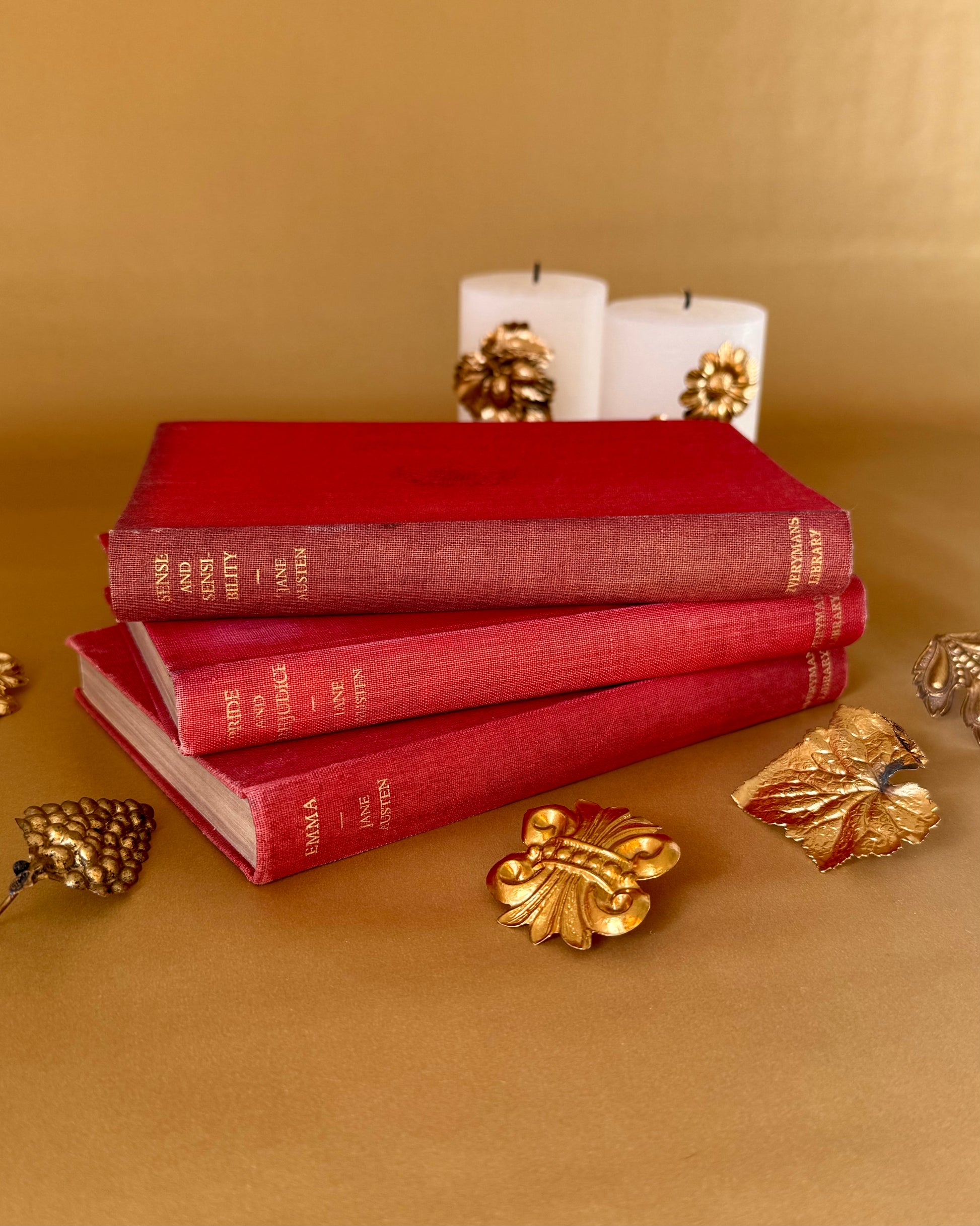 This beautiful set of three works by Jane Austen, published as part of the celebrated Everyman's Library series by JM Dent & Sons Ltd. This edition features the deep red cloth bindings and classic design aesthetic of the mid-20th century printing run.